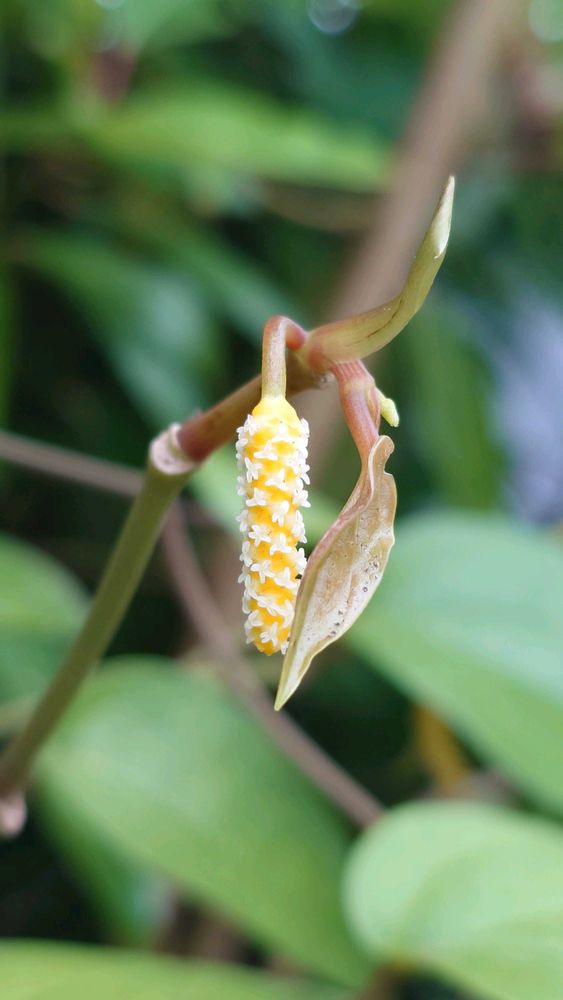 我が家の庭を侵食中のフウトウカズラ ジワジワと桜の木だけでは飽き足らず地を這いながらあちこちへ この子は5mほど離れたユズリハに纏わっていました