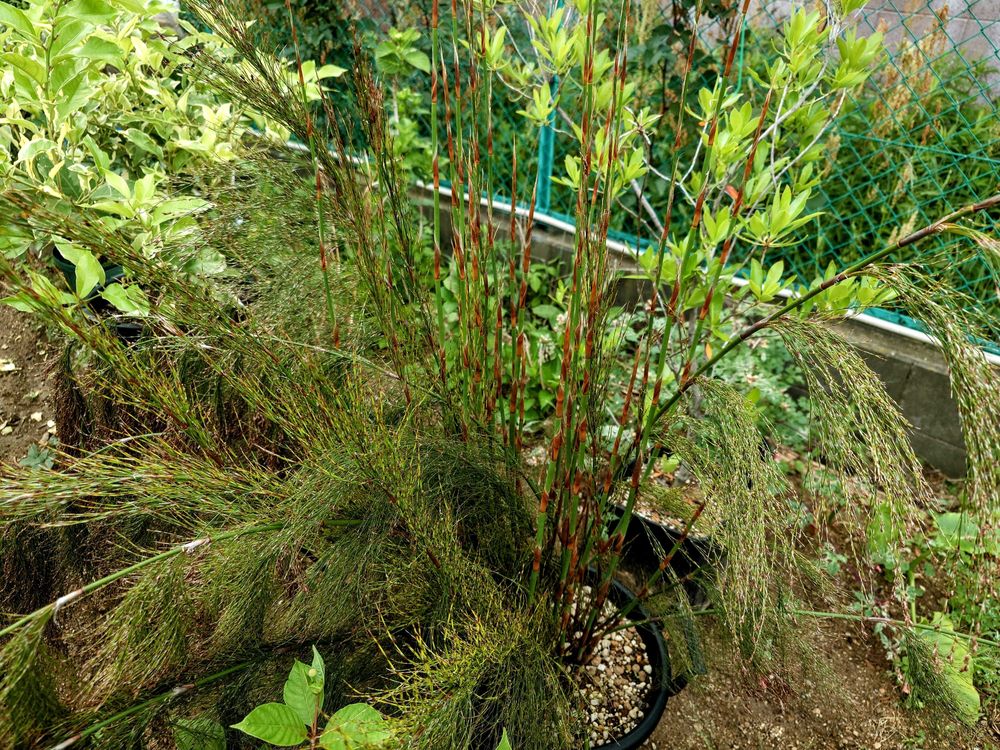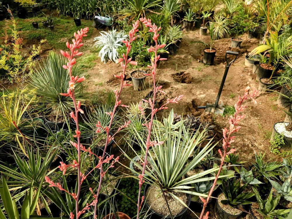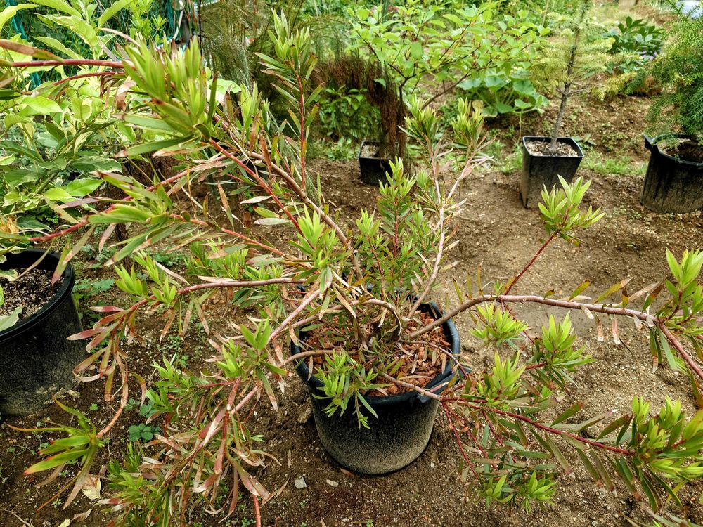 ヘスペラロエ、もうすぐ満開。ロドコマ カペンシスは3つあったのが2つ枯れて、唯一生存しているこの子は元気。リューカデンドロンもこの畑に2つあって、1つは枯れてしまったのでどっちがどっちだったか定かでないですが、これはたぶんハーベストだったような。花が咲いたらわかるでしょう。これも植え替え完了です。