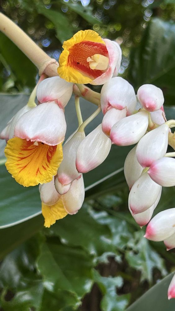 初めて見ました😲‼️名前は聞く月桃ですが┅こんなに個性的でかわゆい花なんですね♥️