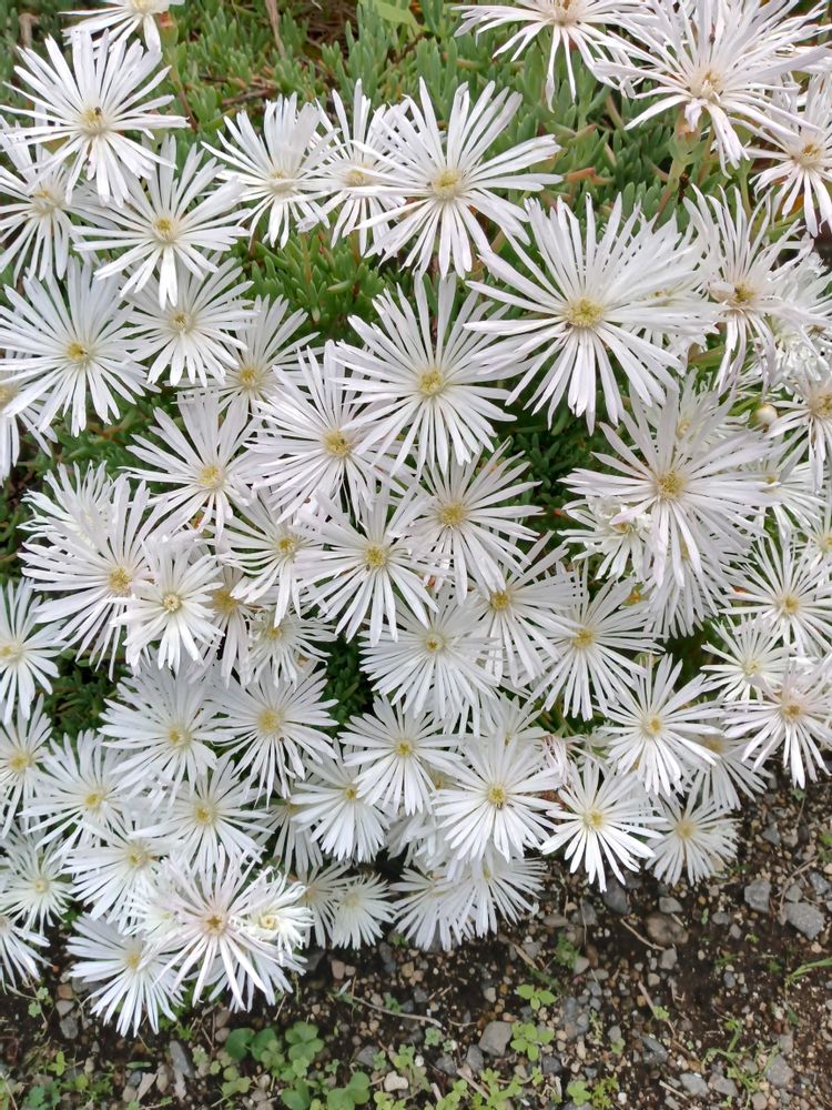 夏は地面に這うお花が雑草対策にもなるから好きですね。しかも真っ白で、涼しげだし💕