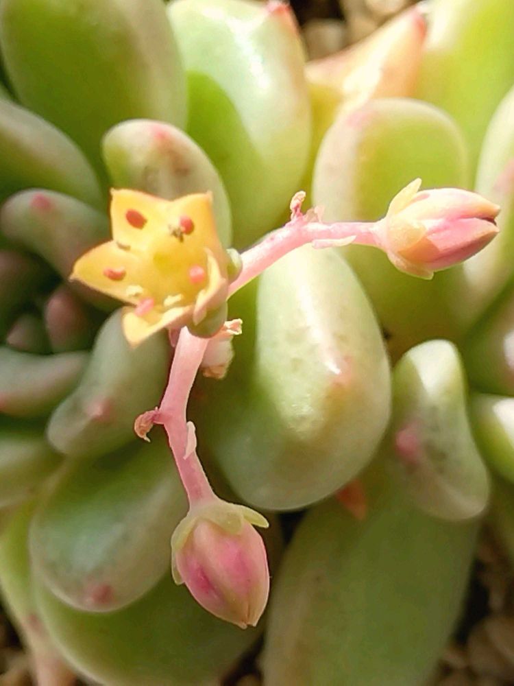 それから🏷️月曜日には、ビタミンカラーであまり濃くなくてビタミン不足(?)の色ですが多肉のアルジェさんのお花を挙げさせていただきます😉