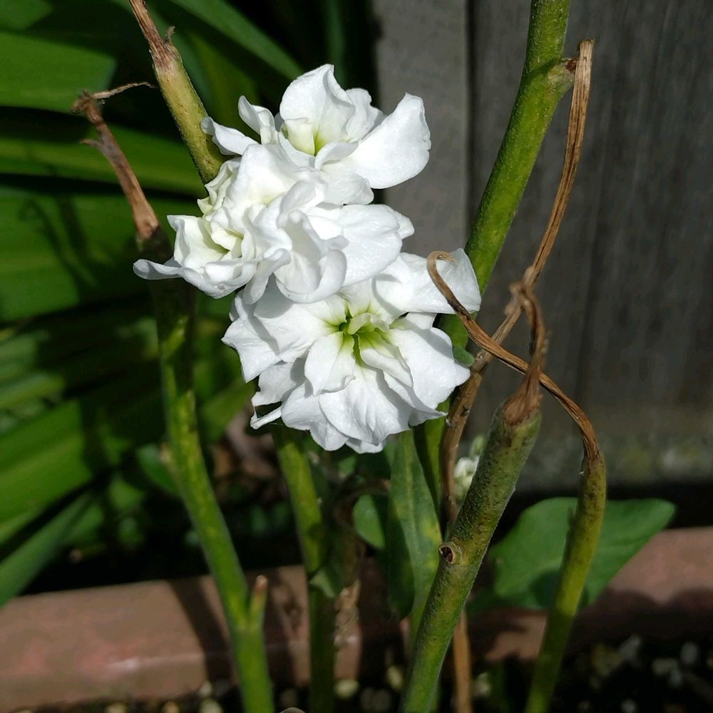 ①早春に買ってきた切り花のストック。捨てるにはまだ少し花がある〜と外の鉢に挿しておいたら…花が咲きました!!