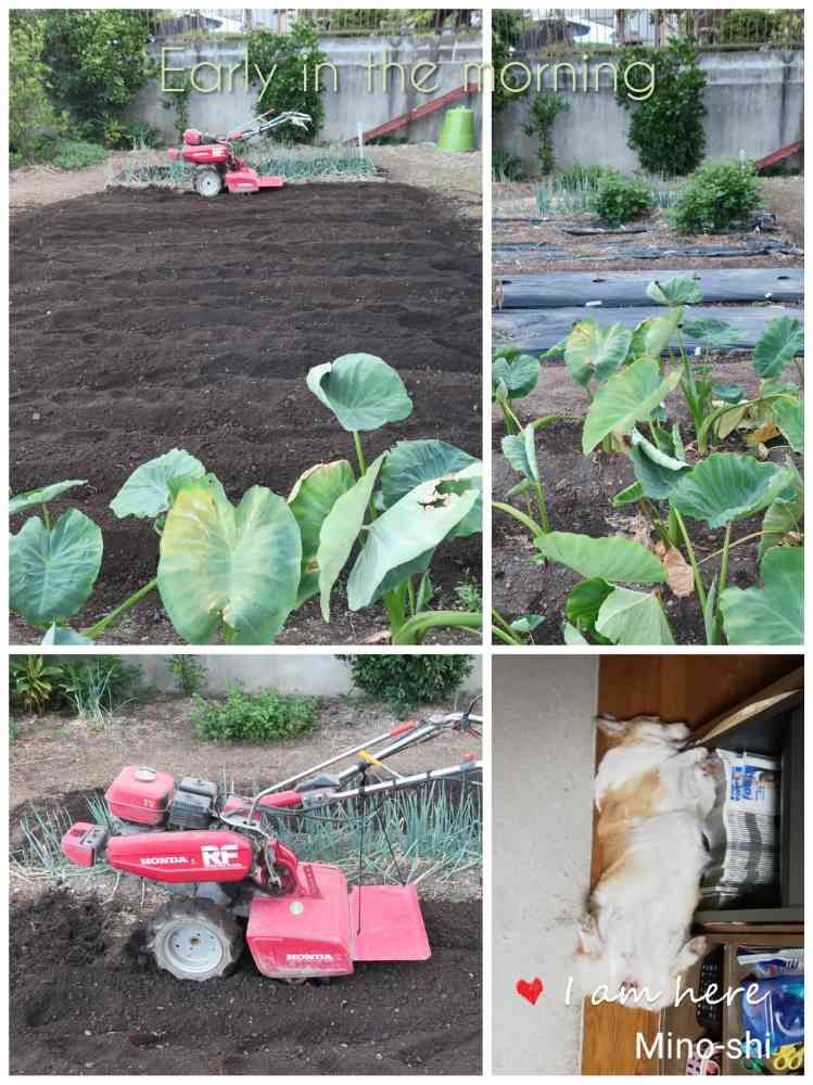 秋野菜のために、取りあえず畑を耕そう。6時スタート。😅