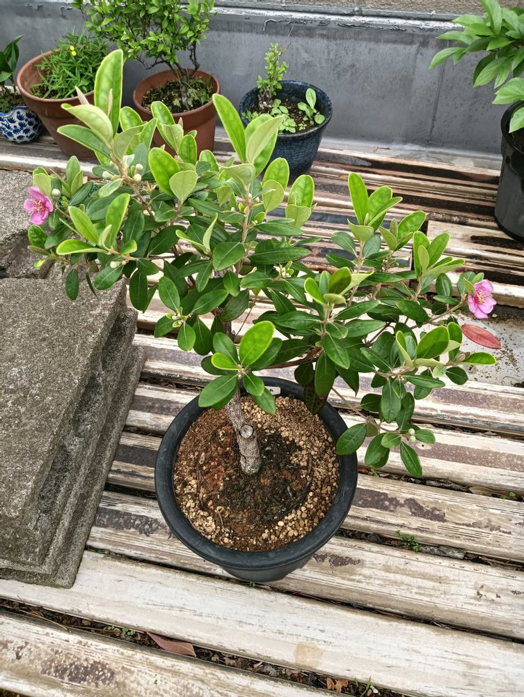 テンニンカ(天人花)が咲き始めました。東南アジア原産でフトモモ科の常緑低木になりピンク色の可愛い花が咲きその後に実がなるのですがブルーベリーのような味がします。沖縄では主に南部より中部や北部に植栽されているようです。うちなーぐち、モウバンシルー、ウェンチュヌミミグワーなど!