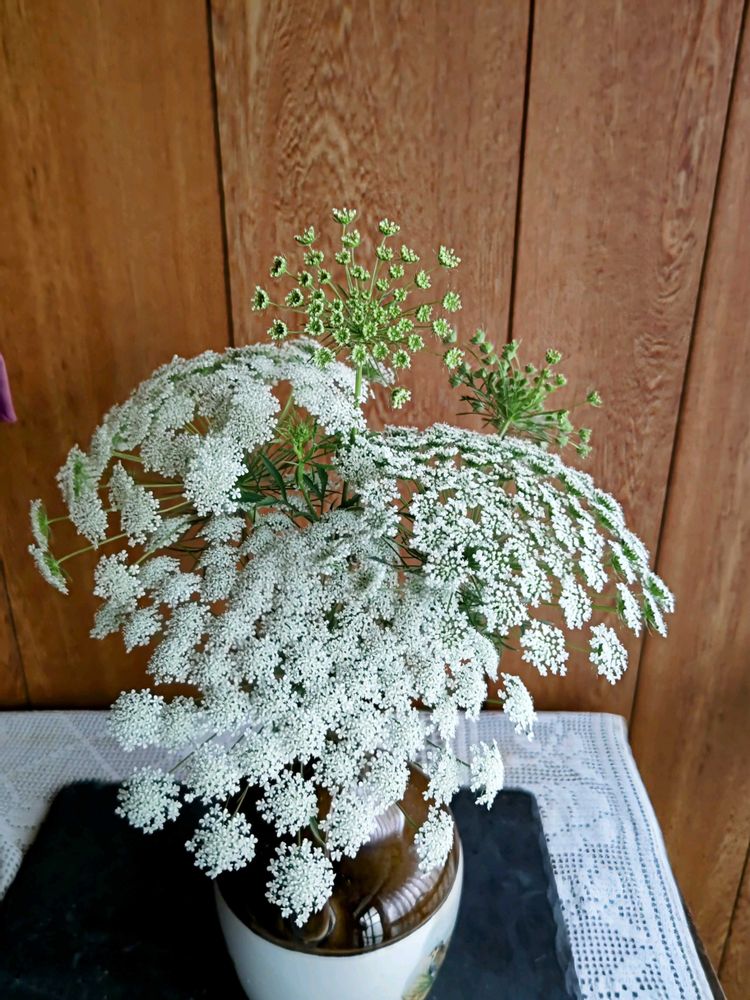 脚立に上って撮ったホワイトレースフラワー、切り花にしたのですね😉
