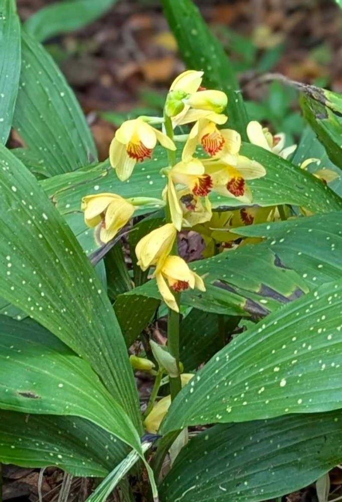 ③こちら花を含めた形態は一緒で単純に葉に黄色い斑点が散りばめられてるからホシケイラン(星恵蘭・星鶴蘭)と呼ばれるガンゼキランの1品種⭐️