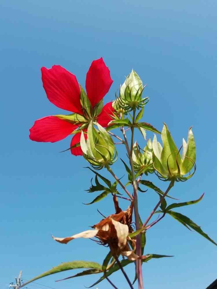真っ青な空にモミジアオイが映えてパチリ👀📷✨