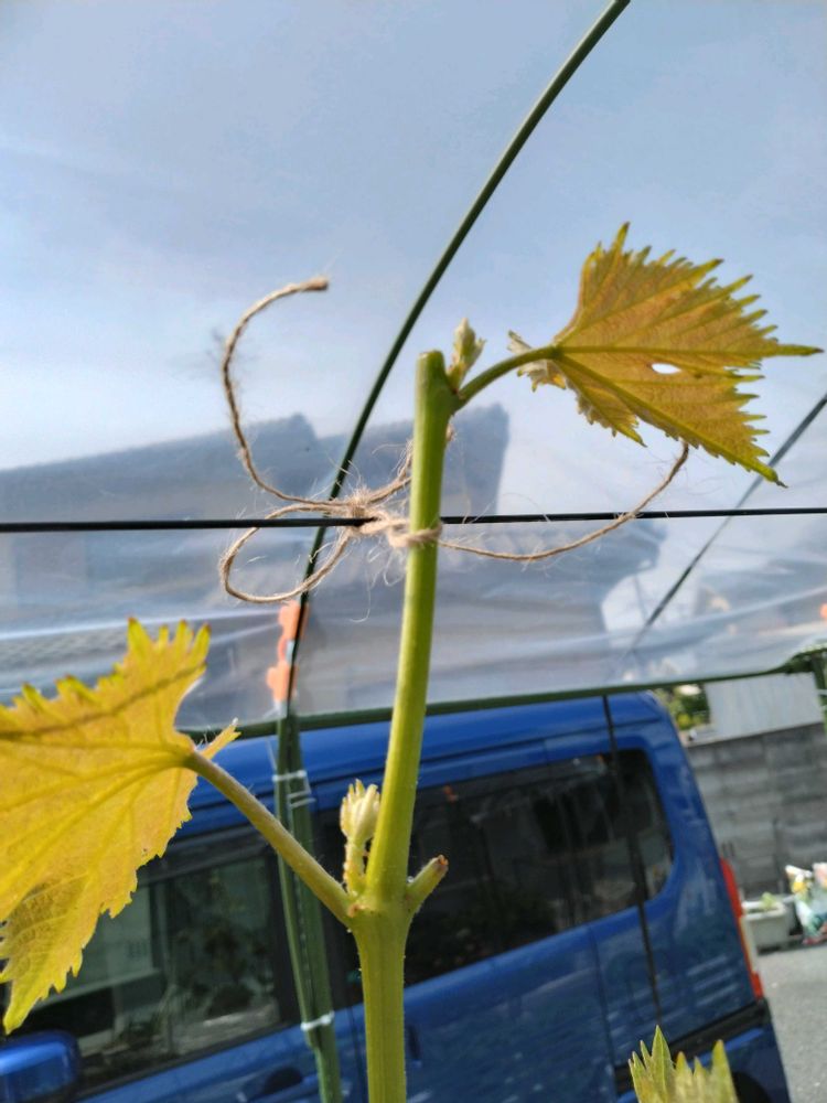 葡萄がTの字に伸ばす高さまで伸びたので先端を切りました✂️