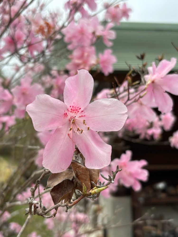 1カ月前の写真ですが、咲き始めのアカヤシオです。他のツツジと違って花弁が全開するので大きな桜の花みたい。福島から紀伊半島の山地に自生します