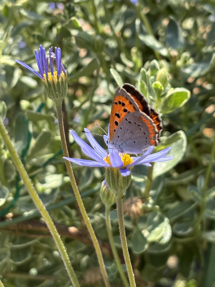 ②庭パトしていたらシジミ蝶が、ひらり〜ブルーデージーにとまって