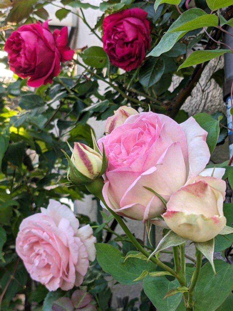 古い枝を切って新しい枝を伸ばしはじめたところなので、花数は少なめです😊