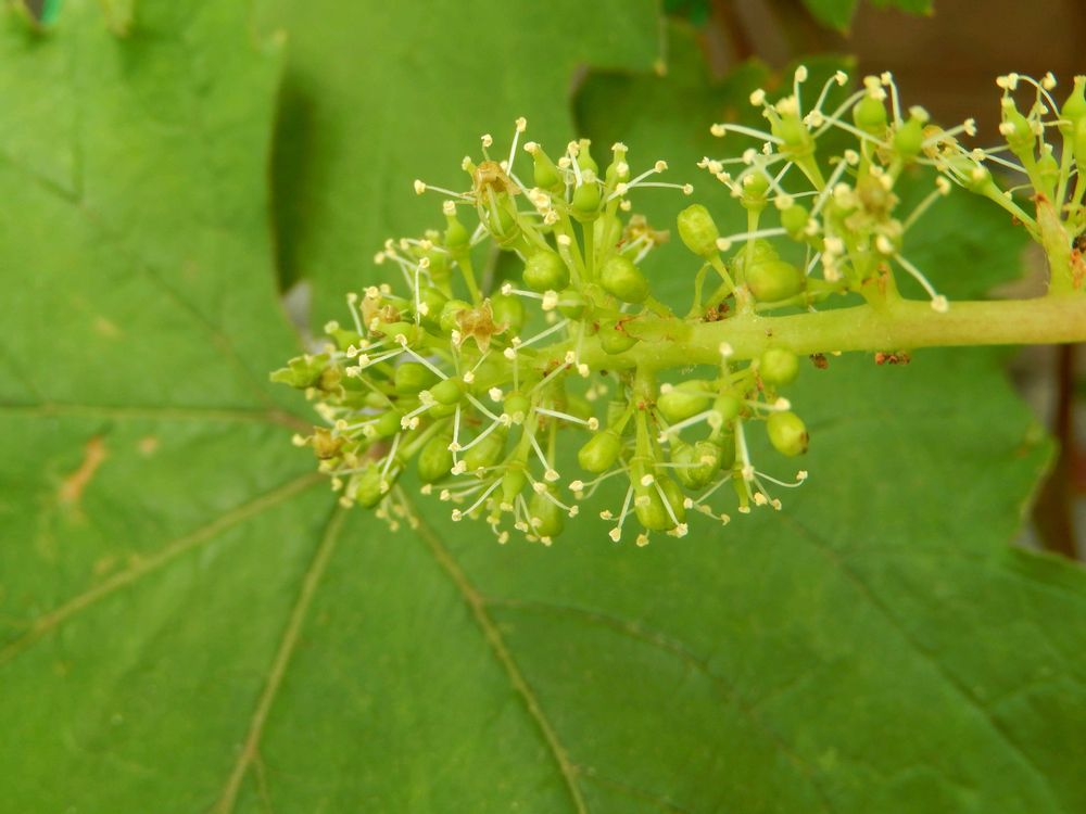 ブドウの花が咲きました.たぶん,2019年4月に投稿した,ピオーネです.最近に食べ播きしたものには,名札を付けるようにしているのですが,こいつは相当に古い物で,名札無しです.記憶をたどって,同じプランターに植わっているので.