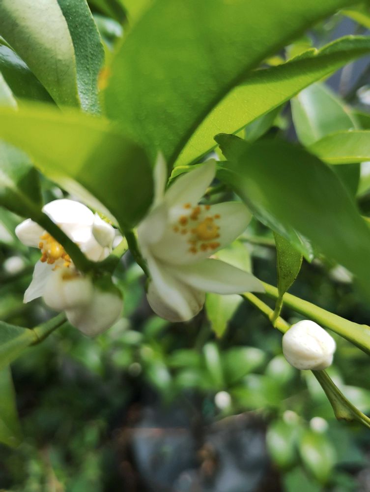 ④シークワーサーのお花。昨年は全く実がならなかったので今年は沢山なってくれるかな?🤭