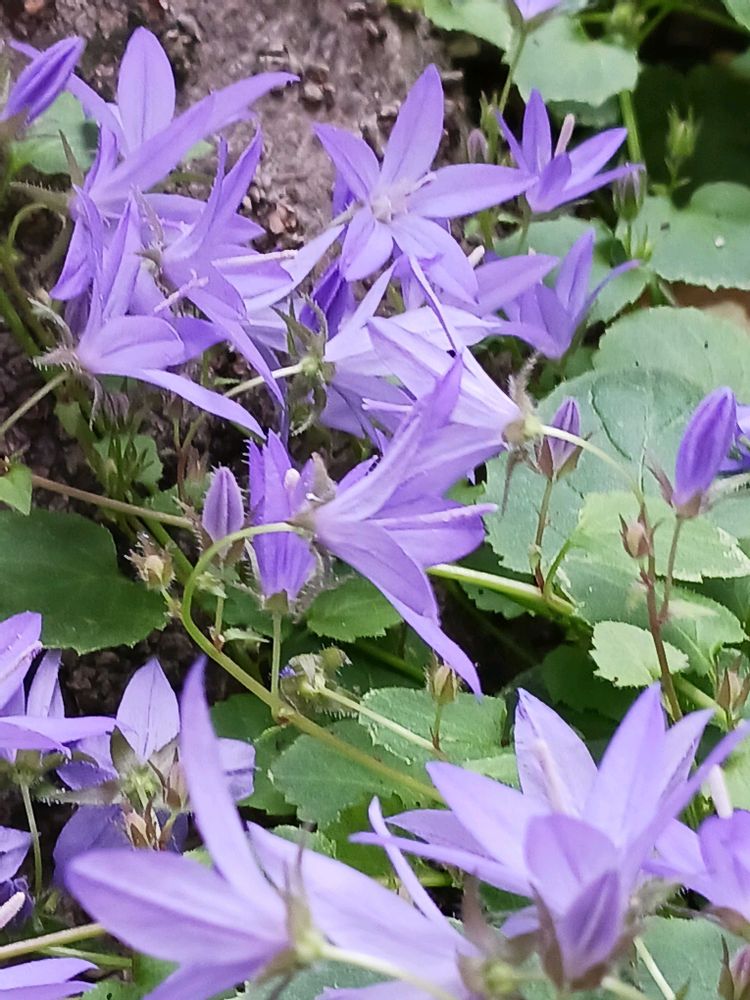 ヒイラギの根元で 爽やかな色合いのお花が咲き乱れています
