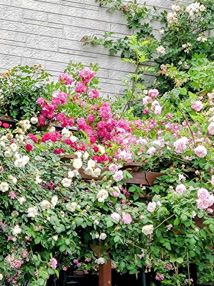⑤車中から、カーポートの上の🌹をパチリさせていただきました。