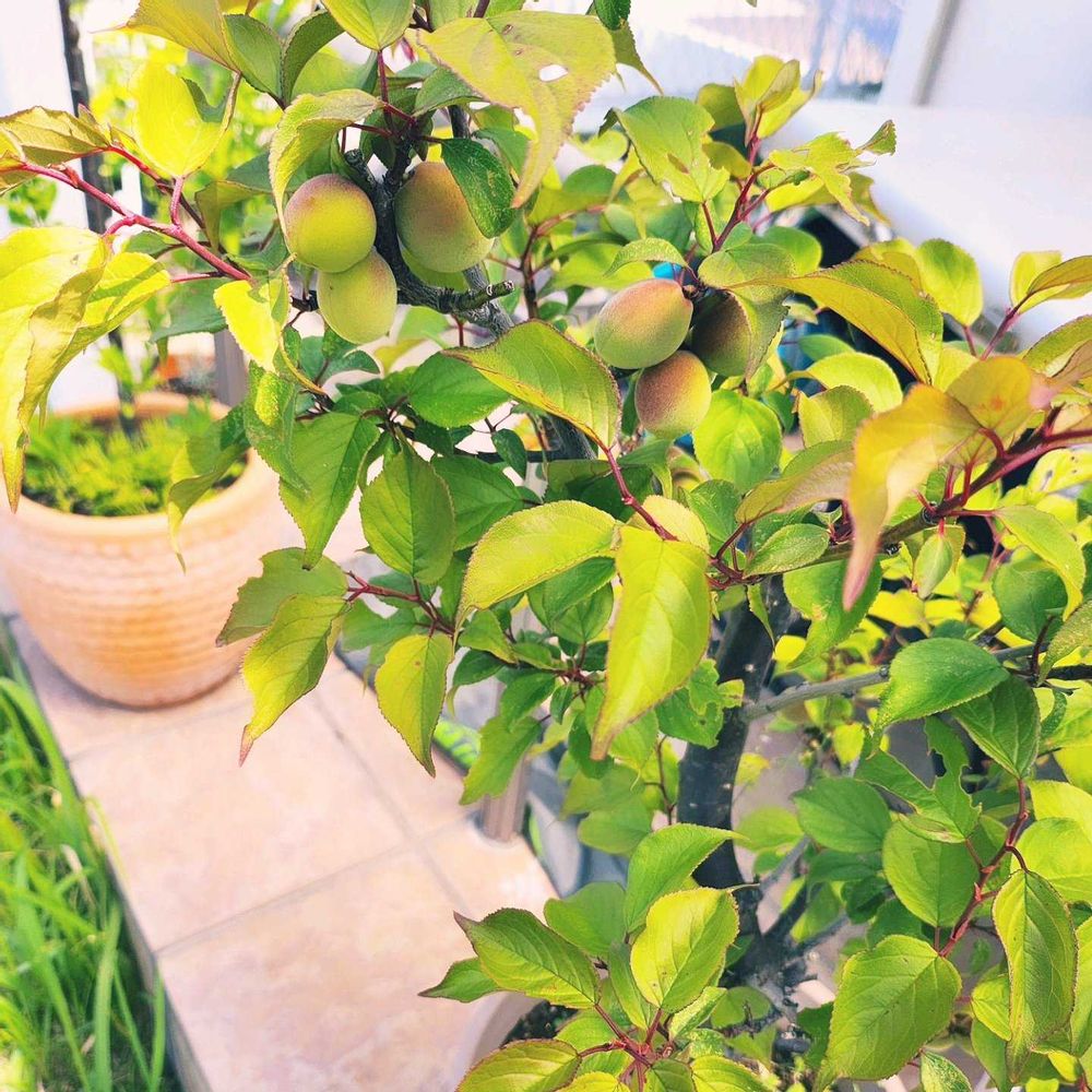 木の寿命を縮めるだろうと実を落とそうか悩みますが折角すくすく育っている実を取る決心もつかずこのまま梅雨終わりまで成長を見守ります。