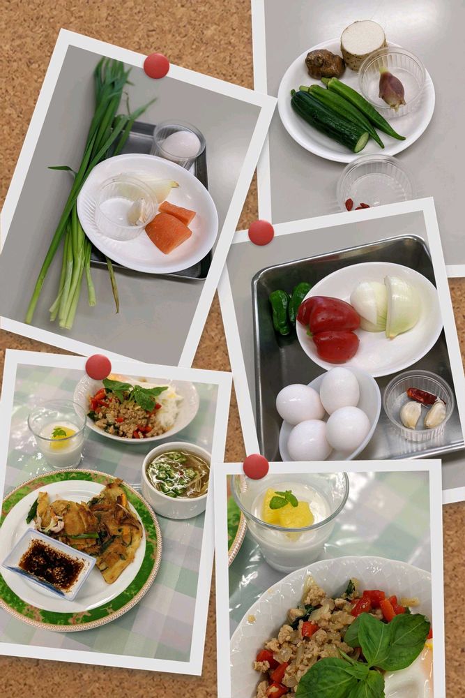 ハーブ教室🌿おうちごはん❁ψ(´ڡ`♡) オイシー♪お料理教室でお花を飾っていました(ღ*ˇ ˇ*)。o☆ˢᵘᵗᵉᵏⁱ✧˖°自家製のハーブ🌱ミント、バジル他