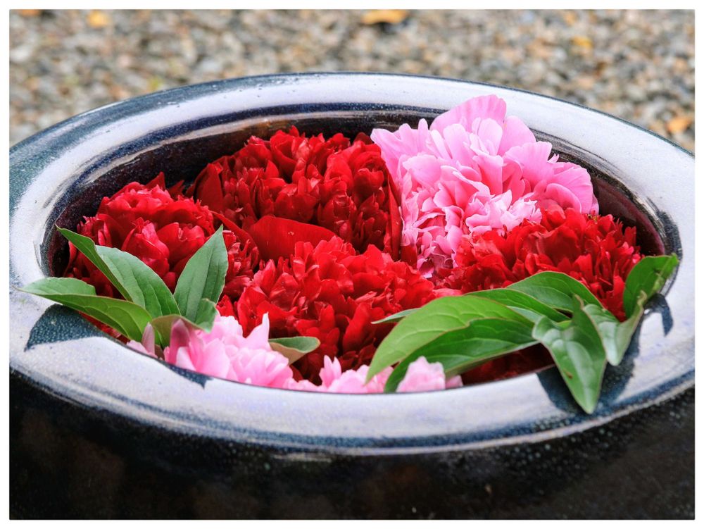 『富山県産のシャクヤクを使った花手水』📷射水市櫛田神社⛩️境内にて☺(5月18日)