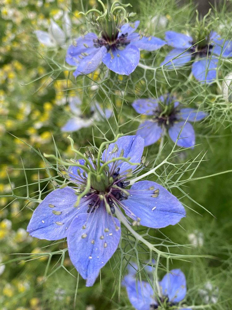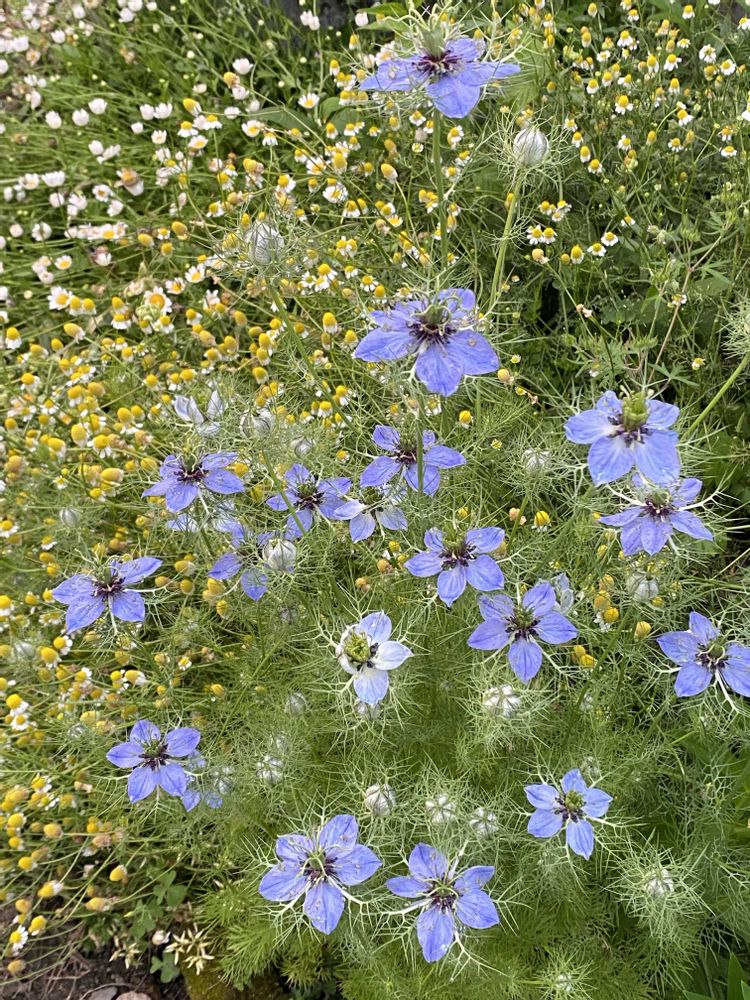 オルレアが先に咲き、遅れてニゲラが咲いて来ました。予想外のことでしたか、私も、色の組み合わせがきれいだなぁと、眺めています💕
