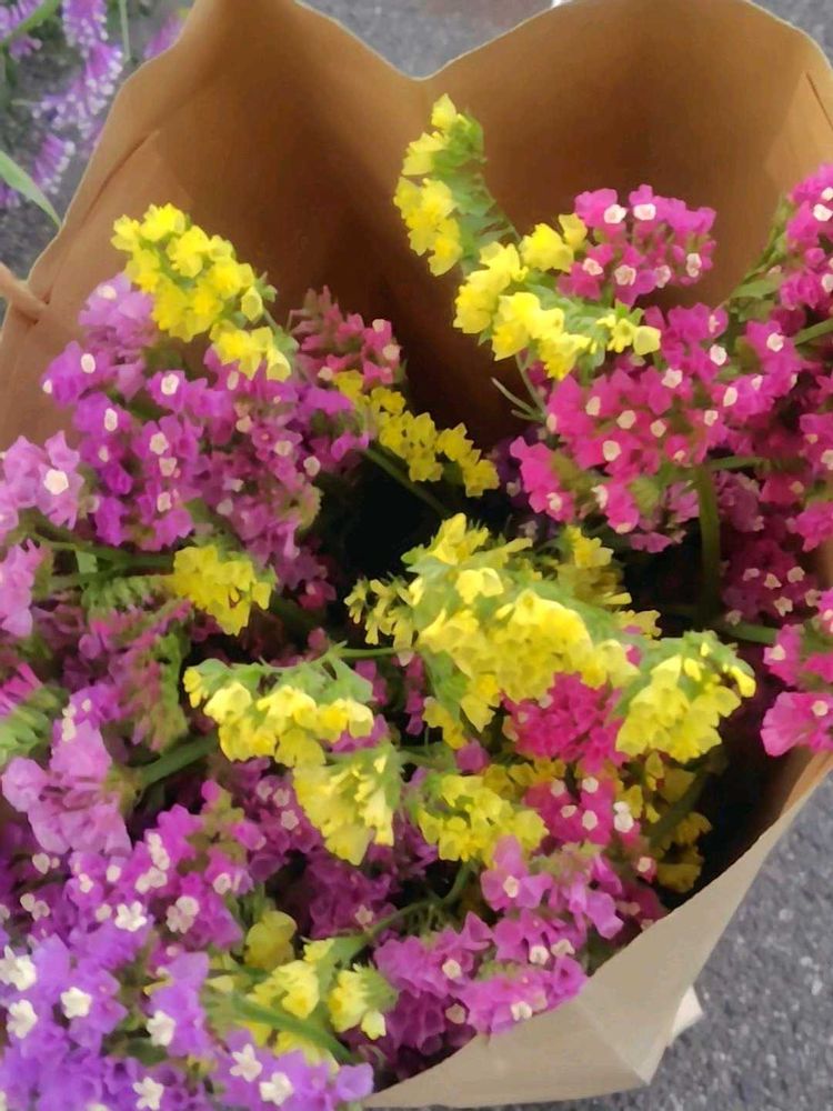 ③夕方、畑の中をのんびり散歩していたら、スターチスをたくさんいただいたよ😆✨️。