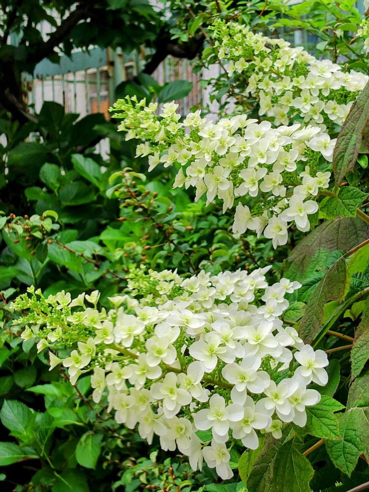 今朝、通勤途中に見かけたカシワバアジサイ。