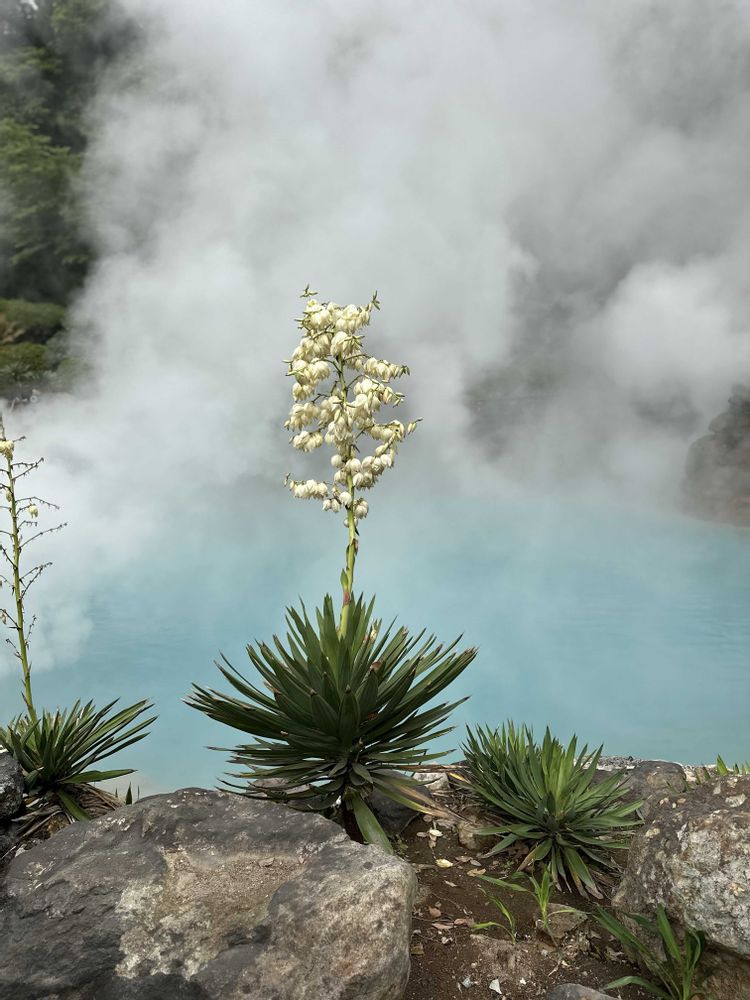 ブクブクと98度の源泉が湧き出ているコバルトブルーの池