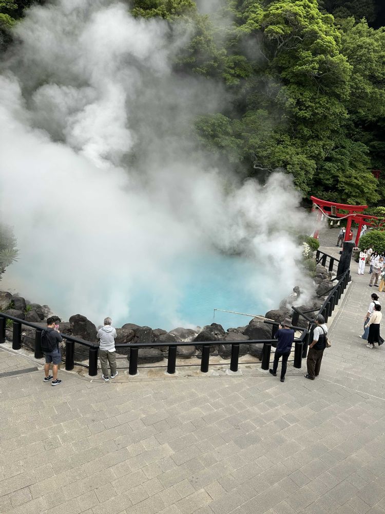 池の青色は、温泉中の成分である硫酸鉄が溶解しているためです。