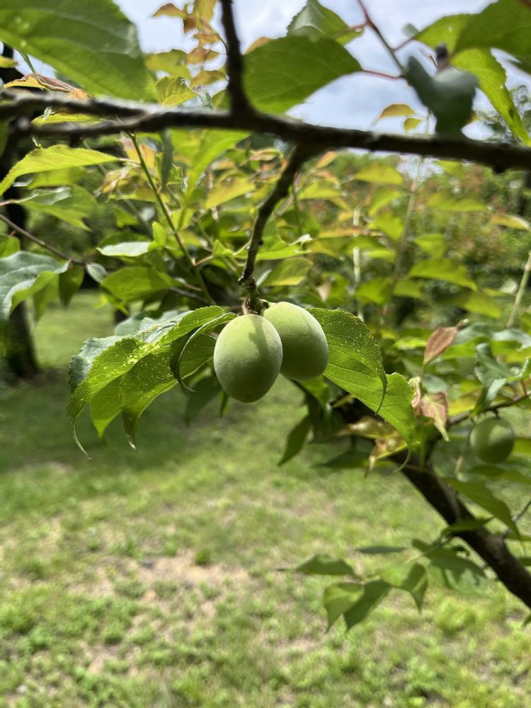 春に花見で賑わった梅林や桜園、桃のあたりはすっかり葉に覆われてほとんどの人は見向きもしませんが、その後を見るのもちょっとした楽しみなんです😊
