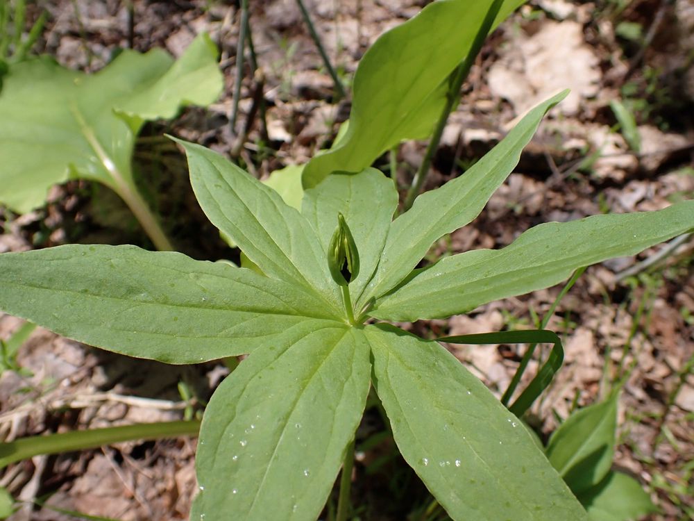 近くにいた、クルマバツクバネソウは、まだ蕾でした。こちらの葉は、7枚ありました。(③)
