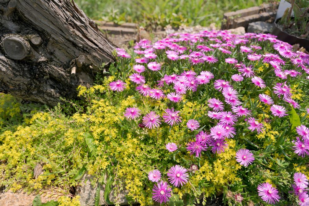 ピンクと黄色の花がたくさん咲いてます👍🎶