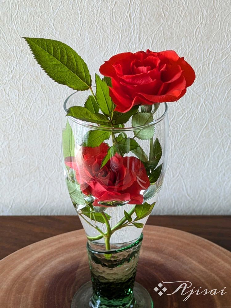 薔薇🌹色んないけ方を楽しめてGOOD👍グラス🥂の中と 上の方でいける〜アイデア💡素敵だな お洒落さん😍 次回 やって見ようかなぁ…