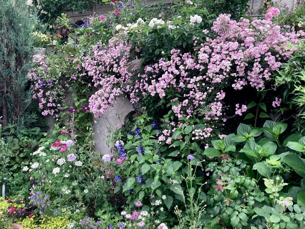 すずさんのお庭、ほんと毎年思うんだけどつるバラの誘引素敵ですよね😍