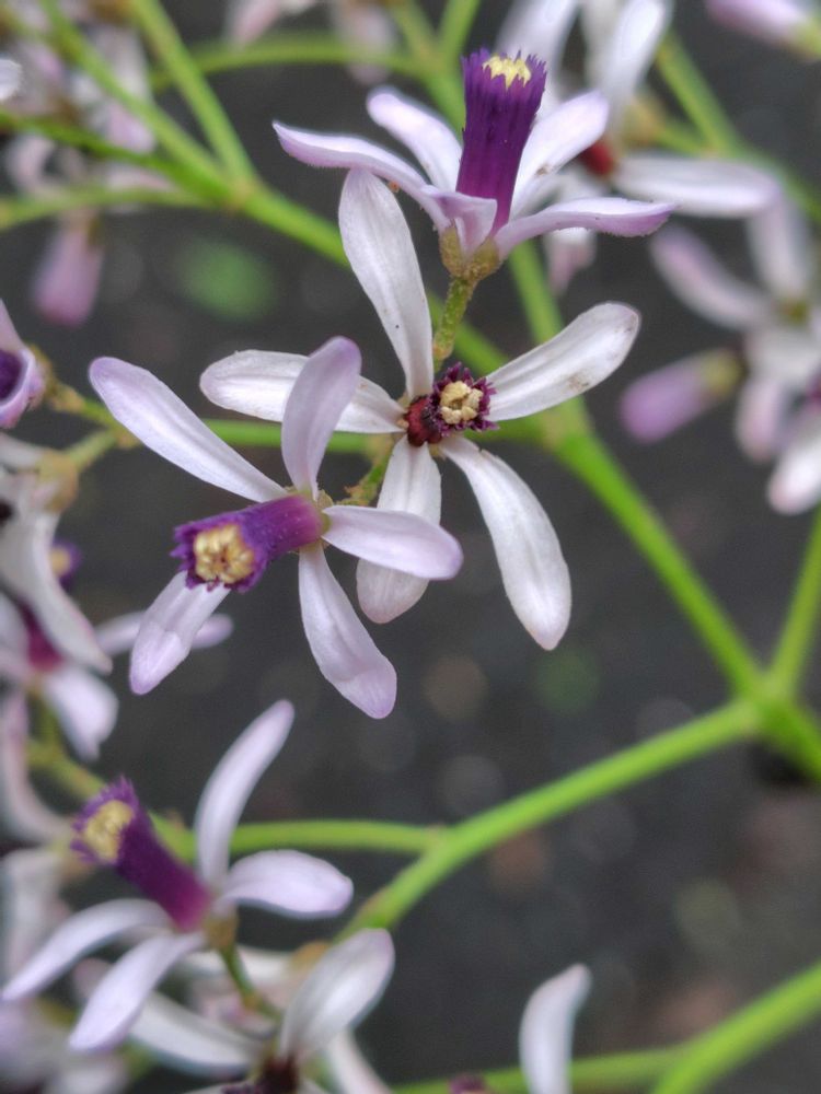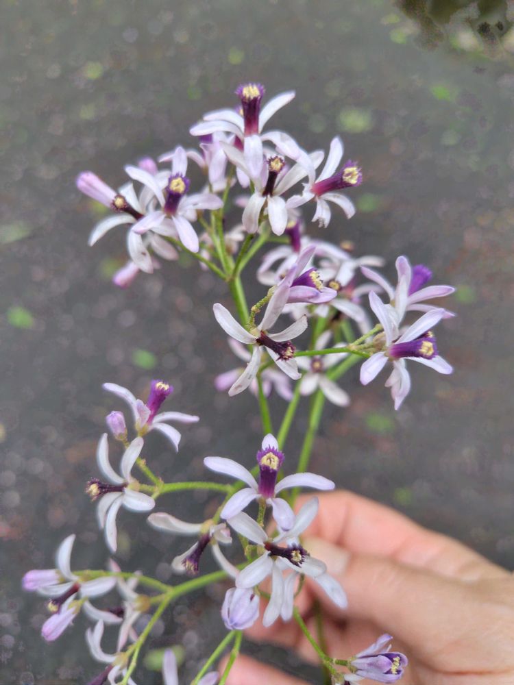 検索したらセンダンとでました。そういえば冬に黄色の実をたくさん見かけました。こんな可愛いお花が咲くんですね。香りも素敵😊💜