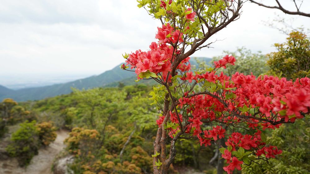 真っ赤なヤマツツジと真っ白なシロヤシオが咲いています😃