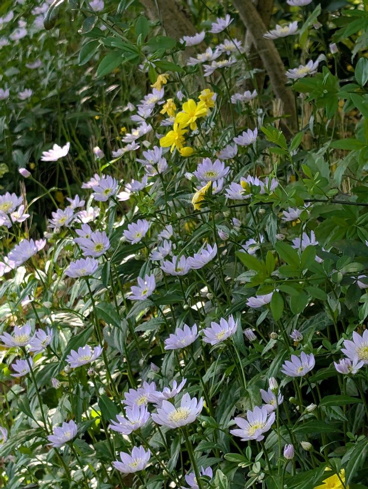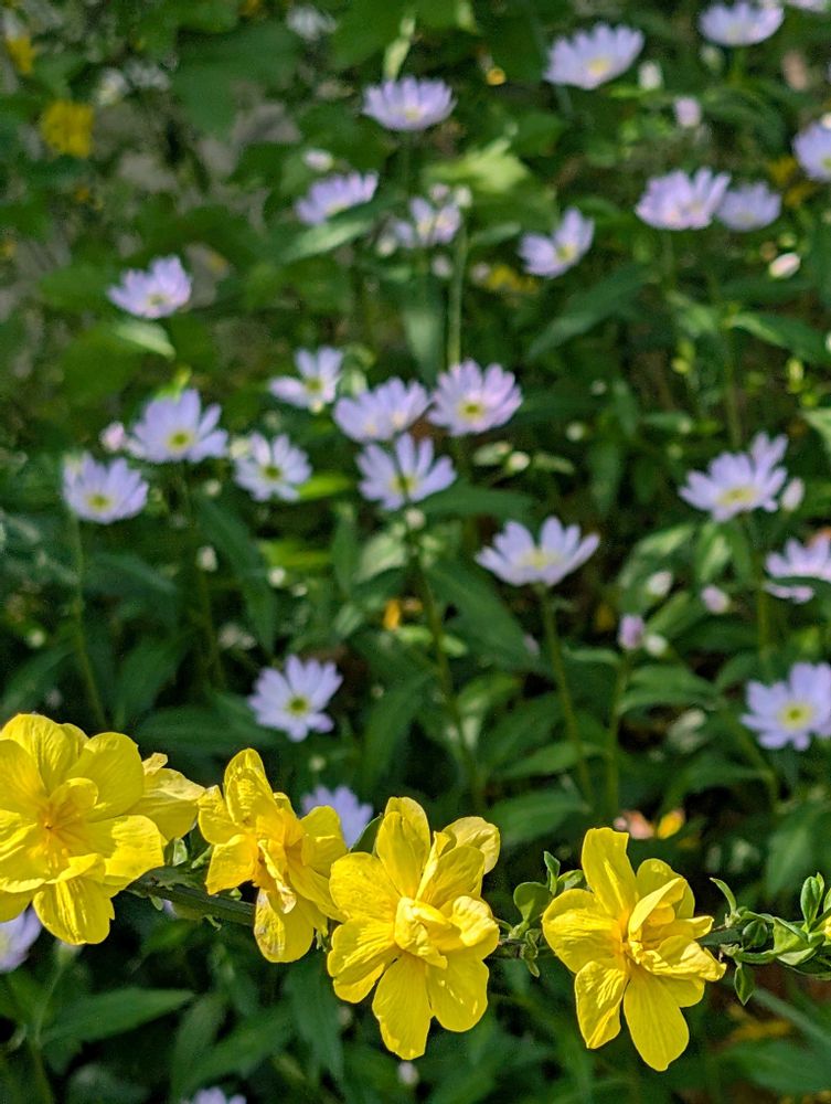 ここにはウンナンオウバイの下に薄紫のミヤコワスレが植えられてます💕