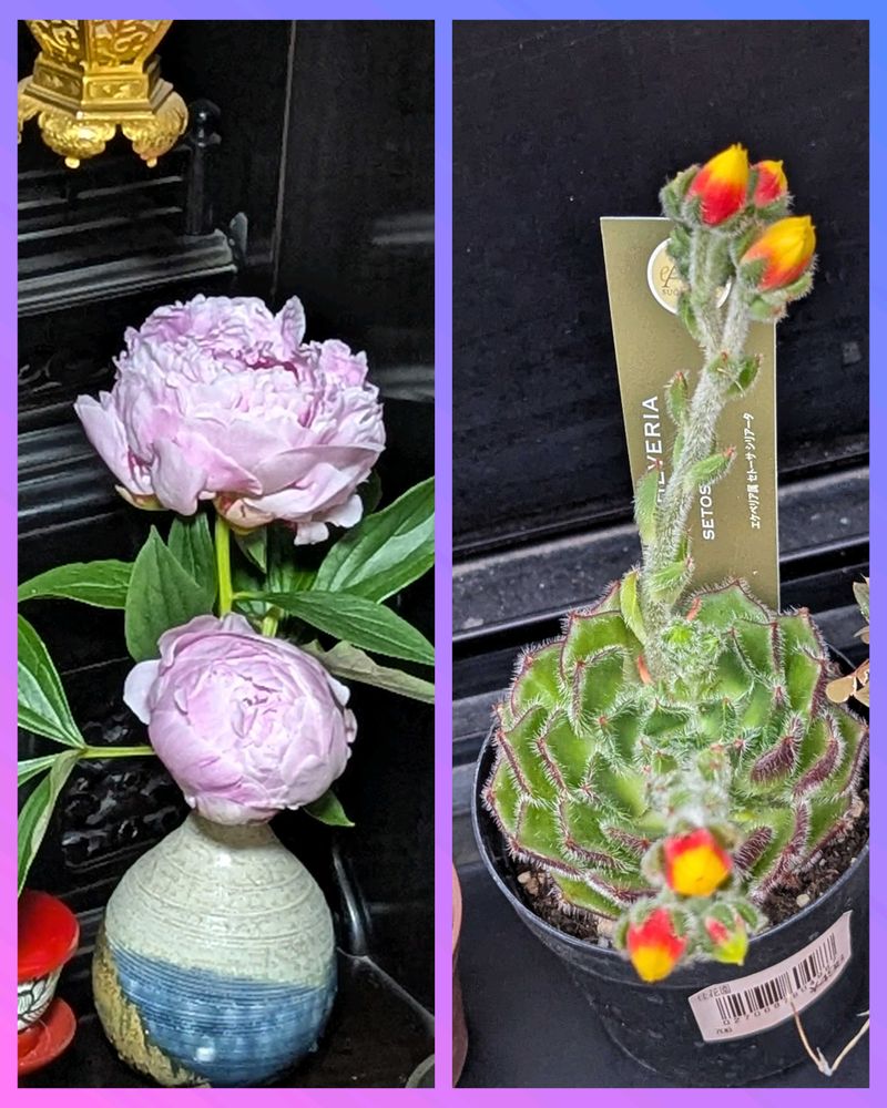 その帰りに仲良しご近所さんにお会いし、立派な芍薬をお褒めしたら「仏壇に飾ってね」と、まだ開ききっていないものを頂きました💓