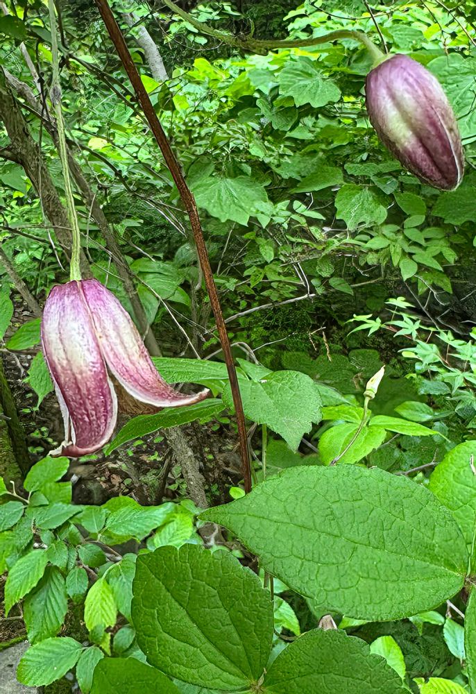 高尾山に紅紫色の可愛いハンショウヅルの花が咲いていました🩷💜🌿