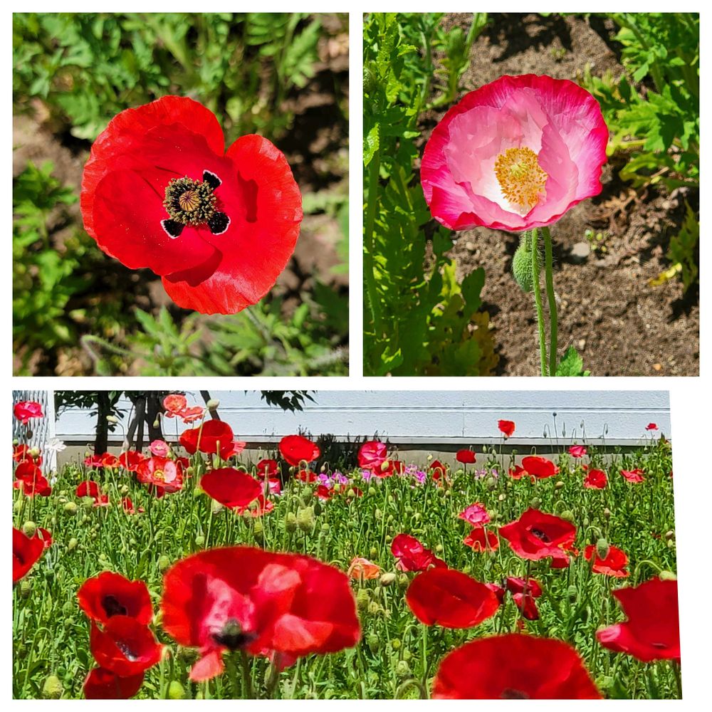 真っ赤な火曜日🏷️、勢揃いの赤い花。ポピー可愛い😍ヘリクリサム、今年も育ててます(ドライフラワーにする為に)が、白ばかり😂🤣