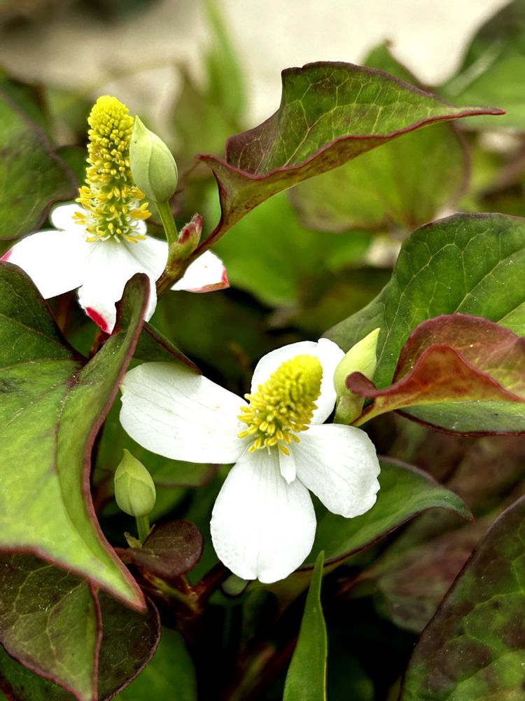 ドクダミの葉の縁が赤くなるのは見ていましたが、白い総苞片も赤くなる事があるんですね😳