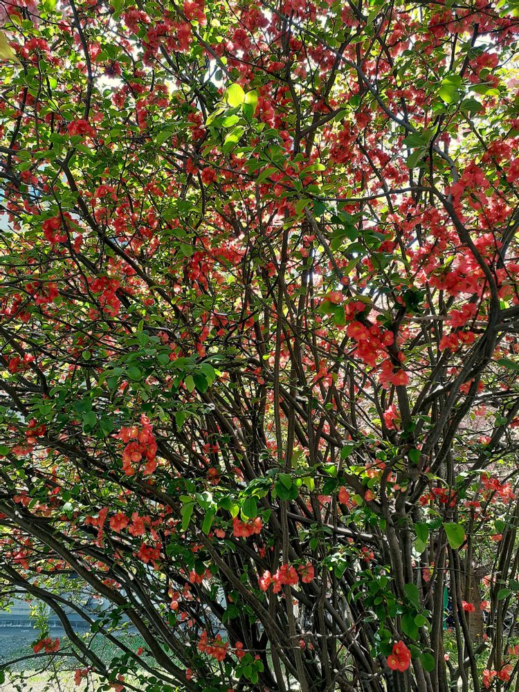 このボケは、桜並木の中で咲いていて、桜に負けじと遥か見上げるくらいに育っていました。(picもぼけちゃってますね🙏)