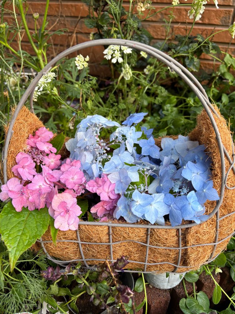 今朝、ヤマアジサイの花手水に入れるヤマアジサイを切りました✂️