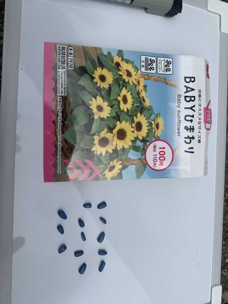 白いひまわりやいろんな色の花が咲くひまわりと悩んで小さめのひまわりがいいかなとこの種にしました