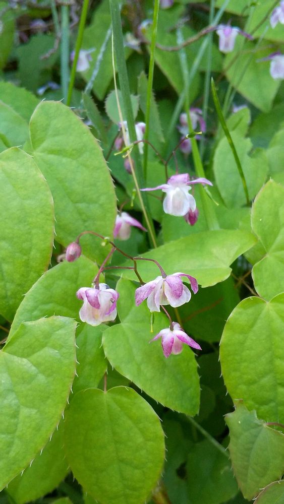 さん 今晩は。いろいろと調べてみましたが、結論から言えば、ちゅう。さんのご指摘のとおり、バイカイカリソウかその交配種かと思われます。バイカの花色は白色だが時に紅紫色を帯びるとあり、この点はクリアできそうですし、花径も、イカリソウが3~7センチであるのに対し、バイカは10~12ミリとのことで、実物の花はまさにその位の小さな花です。さらに最も大きな違いは、イカリソウが花弁に1~2センチの碇状の距があるのに対し、バイカにはないということで、この点でも納得できます。やや気になるのが分布ですが、バイカが中国地方から四国・九州で、イカリソウが本州・四国の主に太平洋側ということですが、バイカが北海道にも移入分布している可能性は十分考えられると思われます。以上のことから、私なりにこの花はバイカイカリソウという結論に至りました。エビデンスがやや弱いかも知れませんが、ちゅう。さんのご慧眼には本当に畏れ入る限りです。今回も誠にありがとうございました。