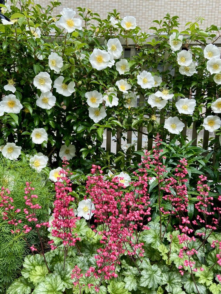 ヒューケラは今年やっとたくさんのお花を付けました。昨年までは貧相で…😱