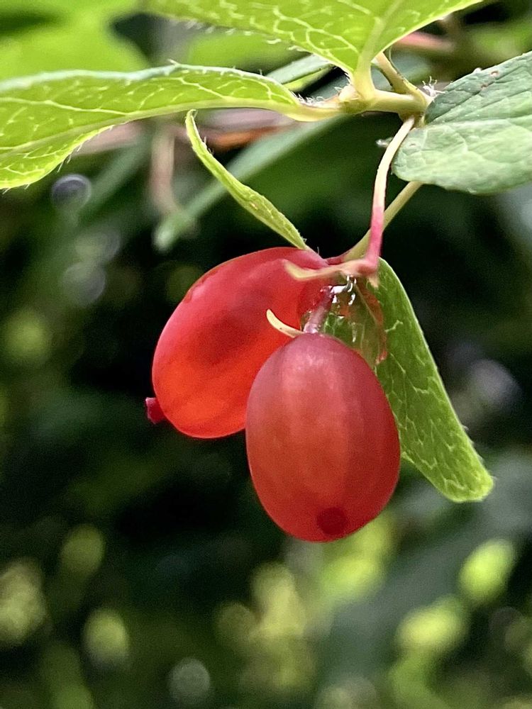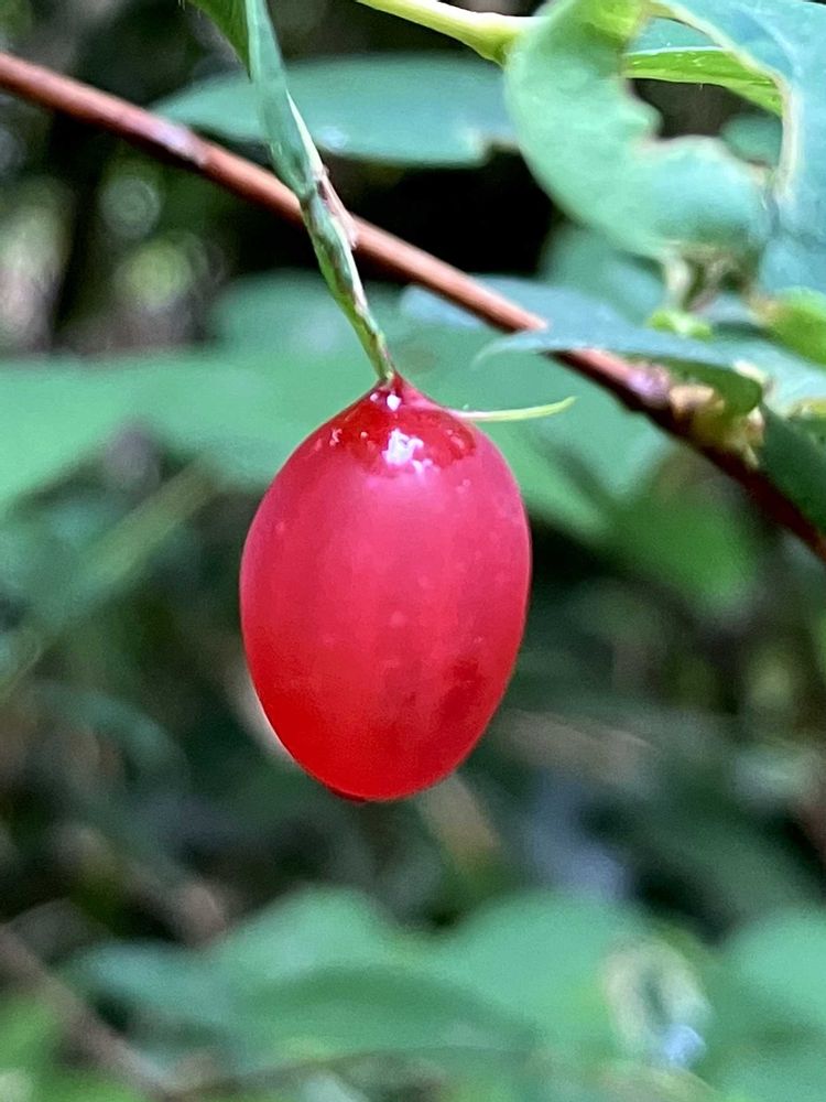 この間のハイキングで、野いちごが多く実っていて味見したのですが、ウグイスカグラの実も食べられると言われ食べてみました。甘味があって食べられましたよ😋