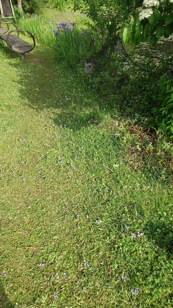 3️⃣4️⃣5️⃣公園のベンチに至る芝生 足元に足の置き場に困るほどのチリアヤメ