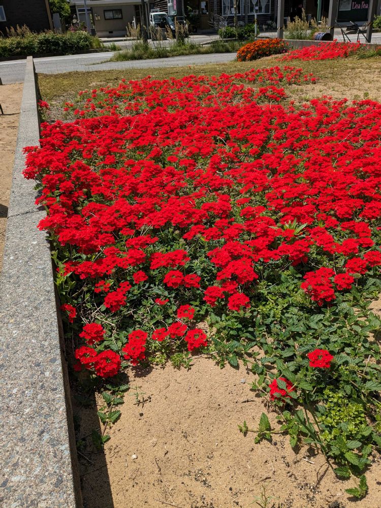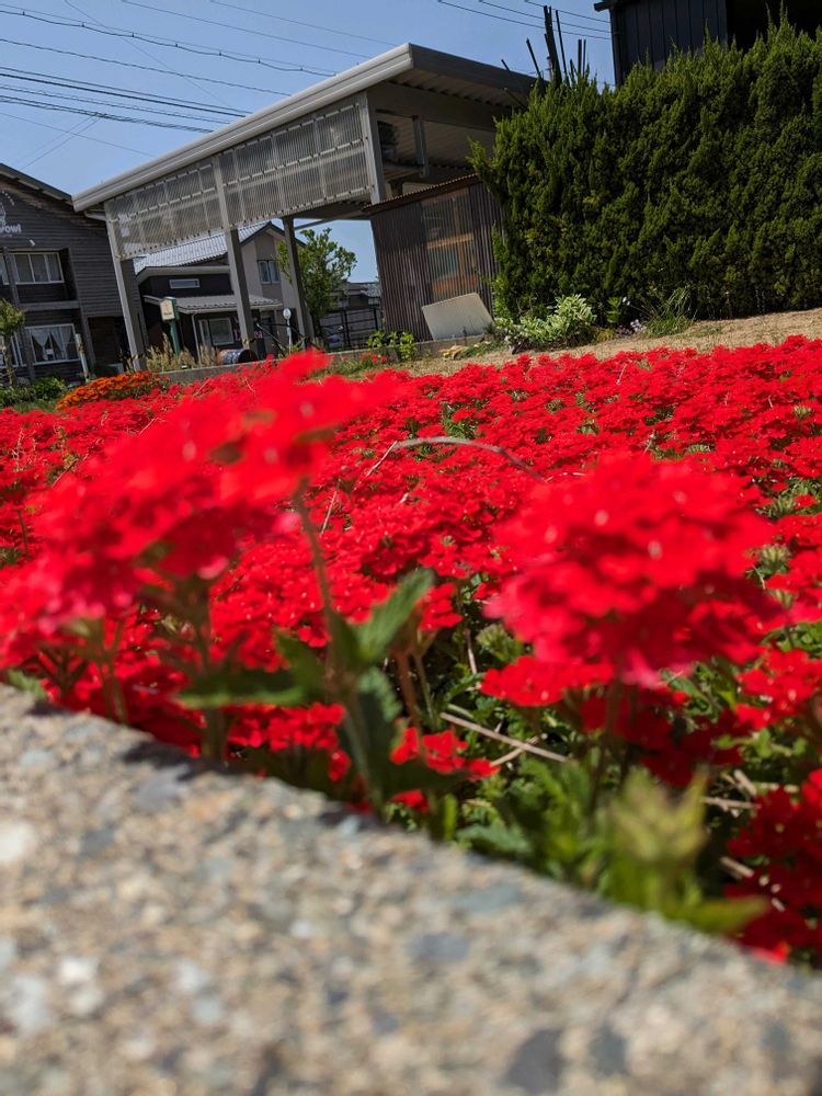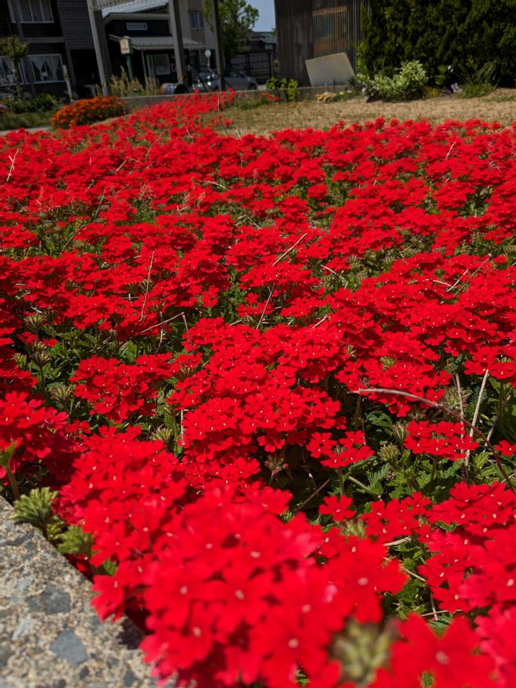 お庭にとっても鮮やかな赤いお花が咲いていました👍奇麗です♥️♥️♥️
