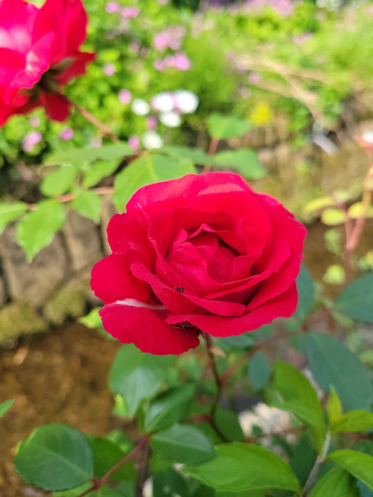 ②挿し木の真っ赤なバラ今年も咲いてくれました🌹🌹🍃