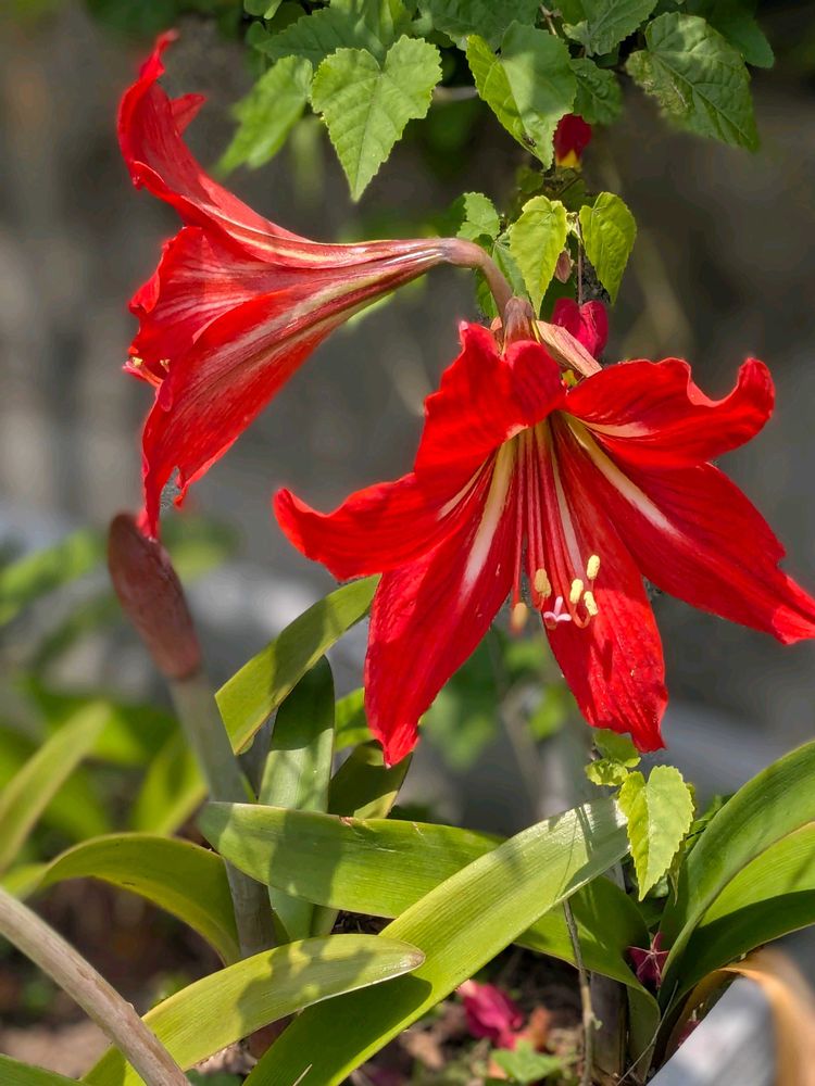 1️⃣赤い絵の具を🚰で薄めた様な♥️のアマリリス