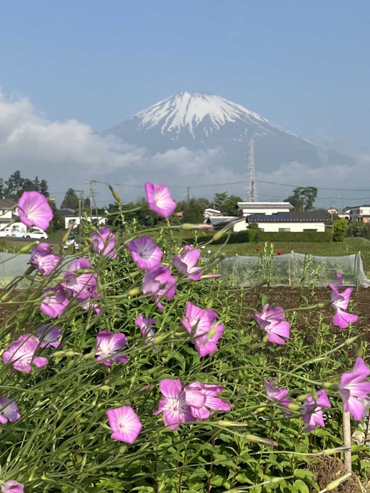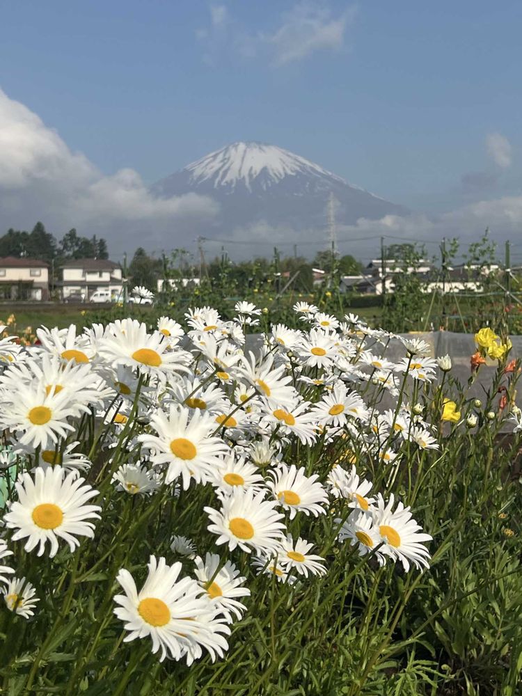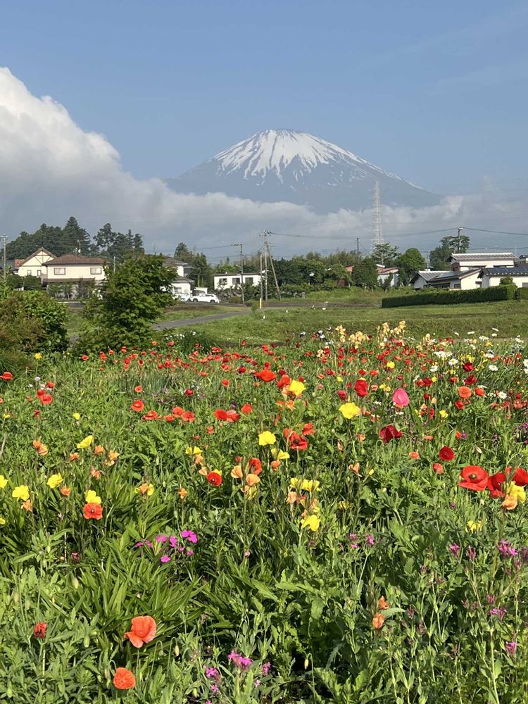 色々な花が咲いている景色を富士山が見守っているみたいですね‼️🦍